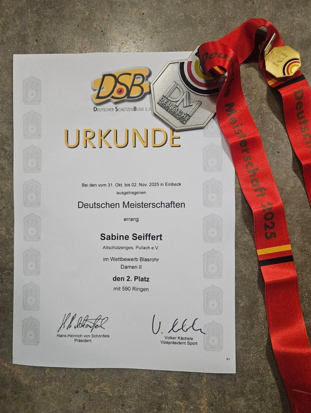 Wir gratulieren unserer Vereinskameradin Sabine Seiffert ganz herzlich zur Vize-Deutschen Meisterin 2025 im Blasrohrschießen! 🎉 Vom 31. Oktober bis 2. November 2025 fand in der Stadionsporthalle Einbeck die erste offizielle Deutsche Meisterschaft im Blasrohrschießen unter dem Dach des Deutschen Schützenbundes (DSB) statt. Über 700 Teilnehmerinnen und Teilnehmer aus ganz Deutschland […]
